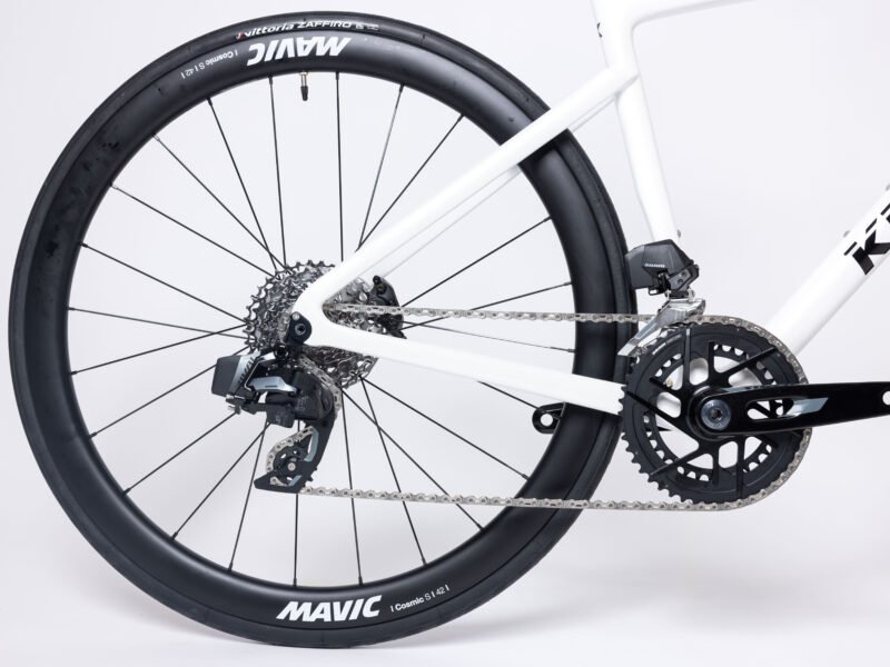 Disfruta de la comodidad en tus rutas más largas con la N1 Sram Rival AXS con ruedas Mavic Cosmis S de 42mm de perfil.